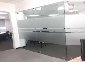 • Divisiones para oficinas en vidrio templado con accesorios en acero inoxidable para anclaje.