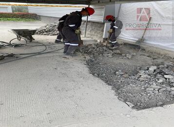 • Obras civiles para la construcción de rampa de acceso 17,5 m2; demolición de piso, excavación, fundida de rampa en concreto 4500 psi con acabado texturizado e instalación de platinas de transferencia.