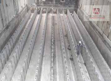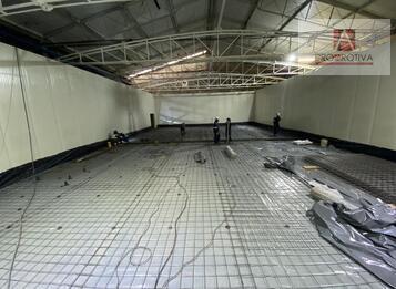 - Construcción de losa en concreto MR-39 contracción compensada e=15 cm. Piso en formato gran panel sin cortes intermedios (320 m2).