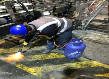 • Recubrimiento con  poliuretano  alinfatico  para  sello  y protección de pisos. Duración de obra 5 días continuos.